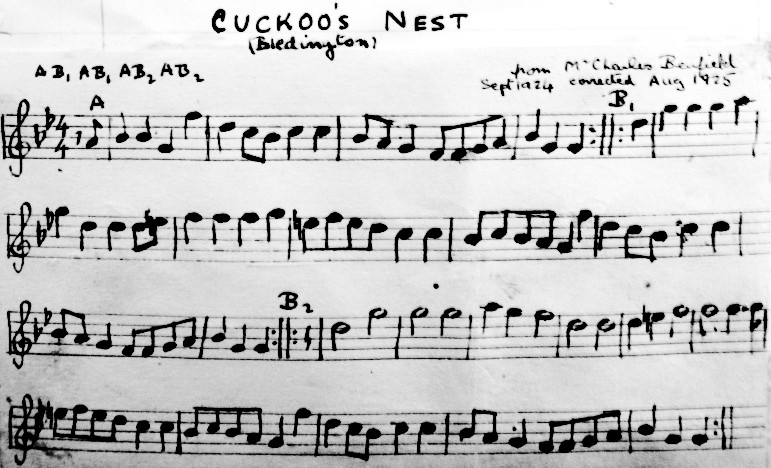 RK Schofield also noted the tune from George Hathaway in Aug 1937. For comparison I have included both versions in the .abc and .pdf files. Although at first glance the two versions of the tune appear very similar, the two versions are in different modes. Compared to the major scale, CB’s version has flattened 3rd and 7th notes, making it in the dorian mode. In GH’s version the 3rd, 6th and 7th notes are flattened, giving the melodic minor scale (aeolian mode). The difference is more evident in the versions to play, in which I have transposed CB’s version so that the notes correspond to those in GH.